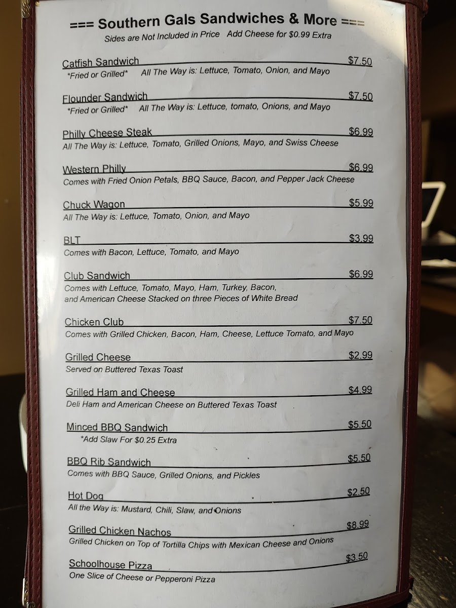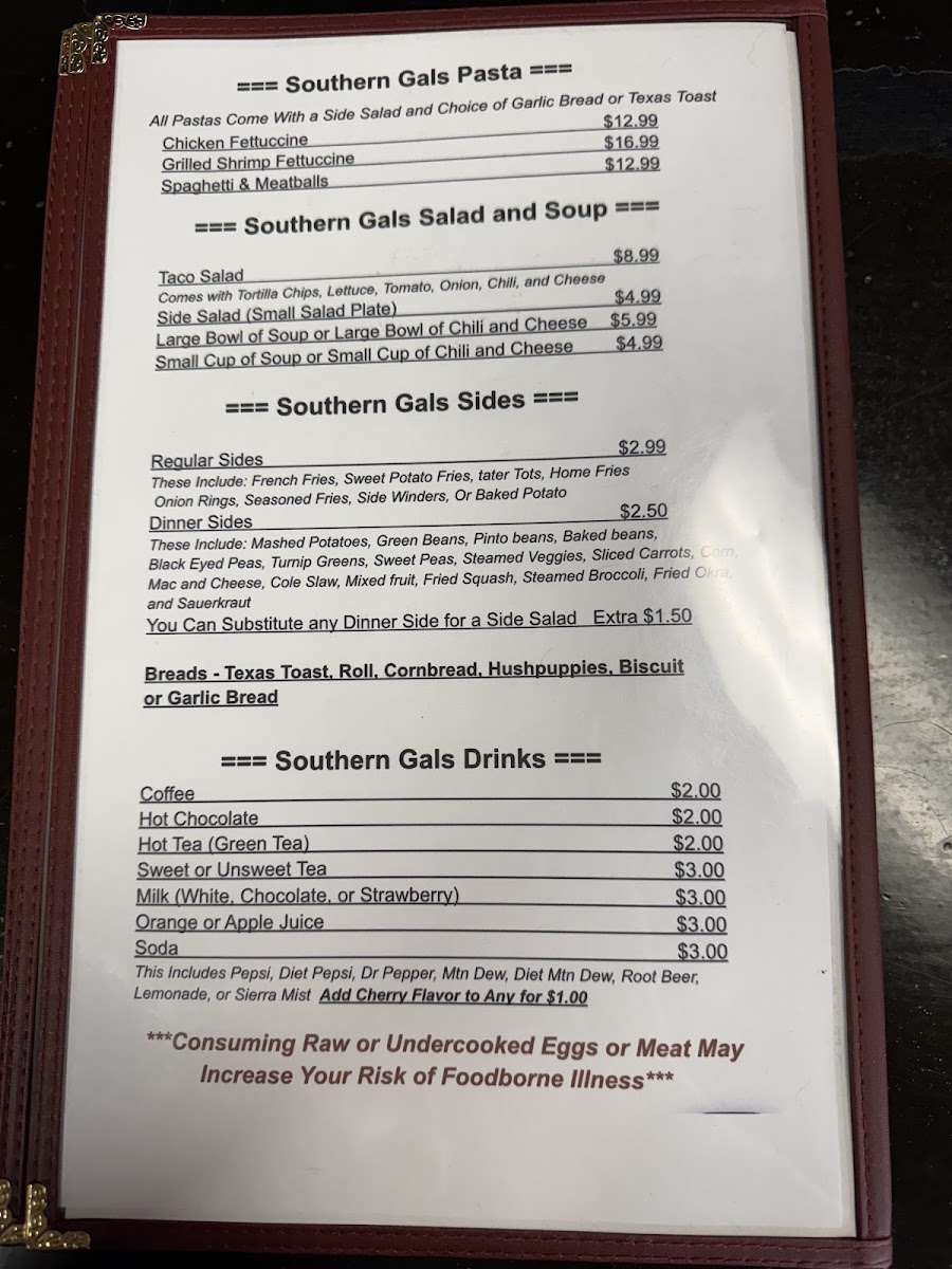 The ambiance may be a bit dated, but the flavors and welcoming spirit make up for it. If you're in the area, Southern Gals Country Cooking is a must-visit for a taste of true Southern hospitality!